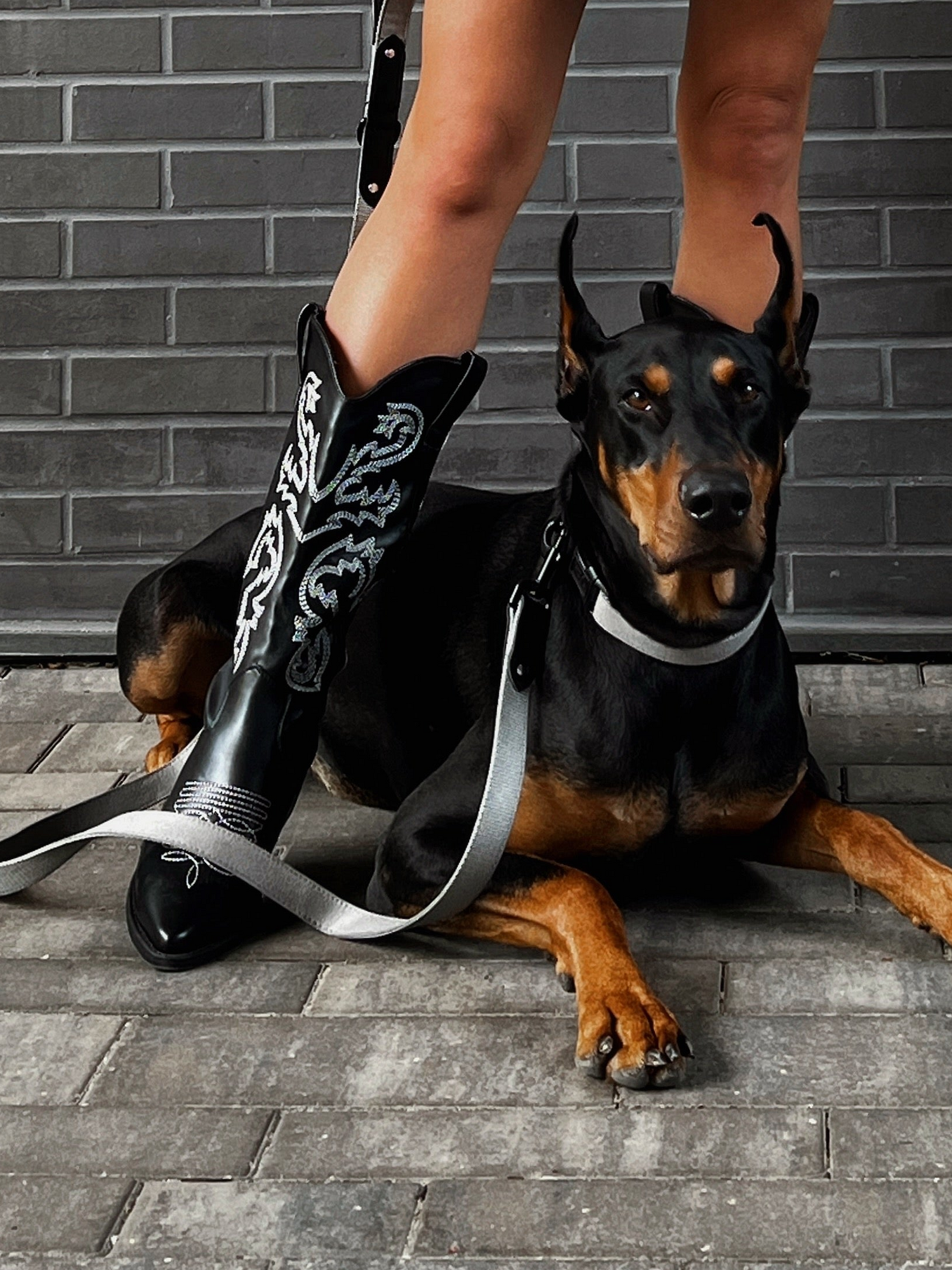 Elevate your dog's look with a stylish collar and leash set that combines fashion and function.
