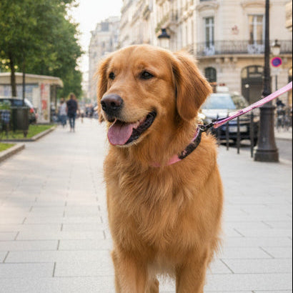 Elevate your dog’s style with our matching leash and collar set. Crafted from premium materials that delivers both comfort and style, the Leash & Collar features include: